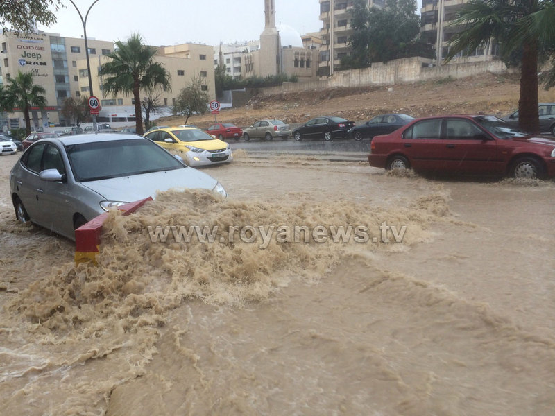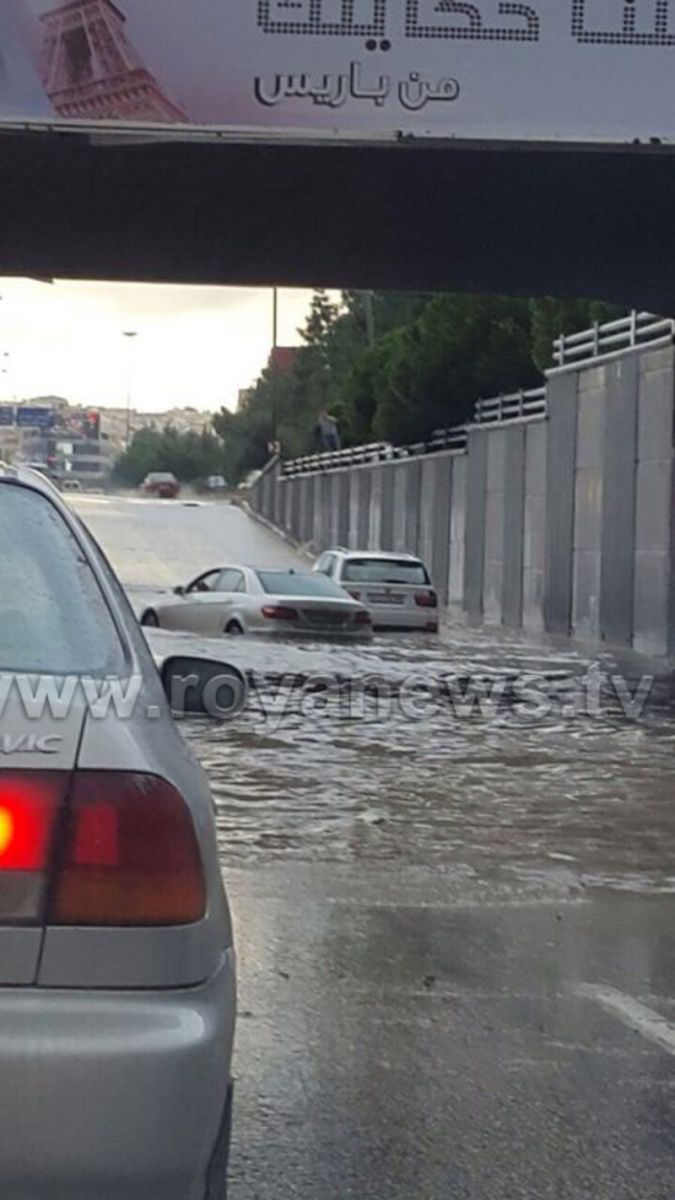 ونشر الاردنيون عبر مواقع التواصل الاجتماعي صوراً تظهر الشوارع التي فاضت بالأمطار والسيارات التي غمرتها المياه أيضاً.