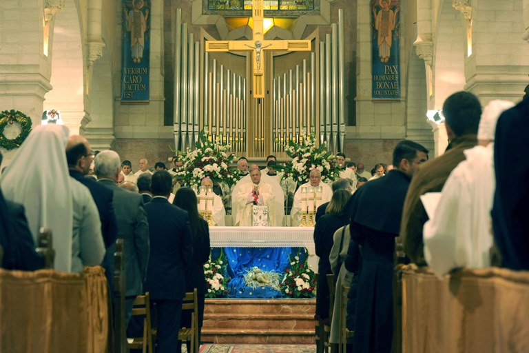 زمن برس، فلسطين: ترأس بطريرك اللاتين في القدس وسائر الأراضي المقدسة فؤاد طوّال قداس منتصف الليل لعيد الميلاد حسب التقويم الغربي، وذلك في كنيسة كاترينا الرعوية للاتين داخل كنيسة المهد، في مدينة بيت لحم، بحضور الرئيس محمود عباس