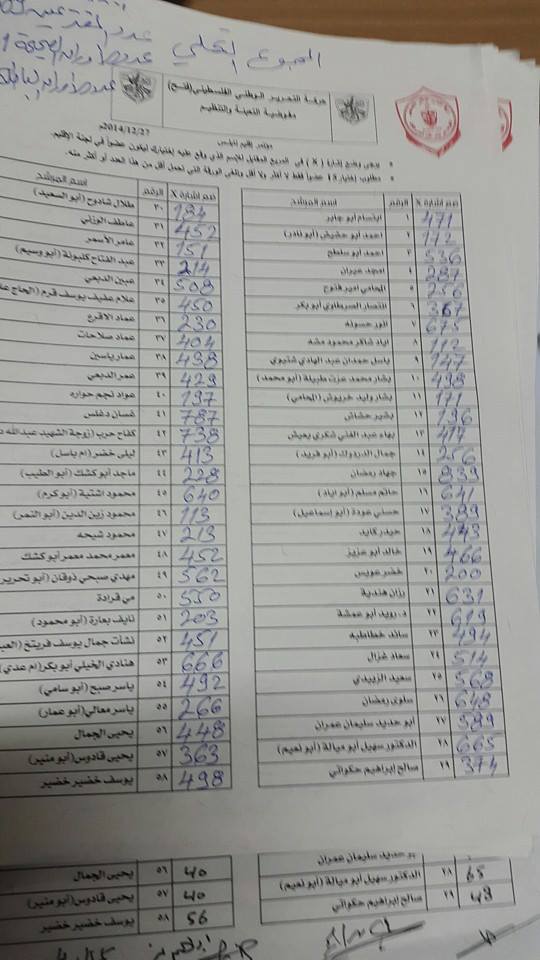 من هم الفائزون بانتخابات اقليم فتح لمحافظة نابلس؟