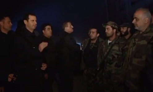 زمن برس، فلسطين: أفادت وكالة الأنباء الرسمية السورية (سانا) أن الرئيس بشار الأسد تفقد حي جوبر في دمشق بمناسبة حلول العام الجديد، التقى خلالها مع جنود وضباط من الجيش، في تنقل نادر للأسد منذ اندلاع الثورة في سوريا منتصف مارس/آذار 2011.