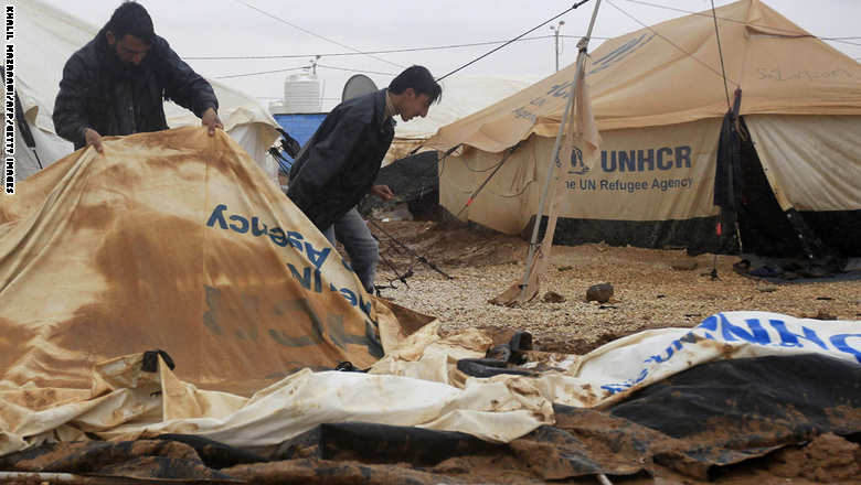ونشرت سي أن أن بالعربية صورًا لأكثر الفئات تضررا وتأثرا برداءة الأحوال الجوية، وهم اللاجئون السوريون، حيث يقيمون في مخيمات تحتاج إلى الكثير من اللوازم للتقليل من حدة فصل الشتاء وتأثير الأحوال الجوية العاصفة، هذه الصورة تلقي بعض الضوء على تلك الأحوال السائدة في مخيم اللاجئين السوريين بمنطقة الزعتري في محافظة المفرق، بعض هذه الصور زودنا بها أحد النشطاء.