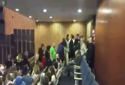 وغادر الطلبة قاعة المؤتمر خلال كلمة الوزير الاسرائيلي التي جاءت في سياق مؤتمر شارك فيه طلبة ثانونيون في تل أبيب.
