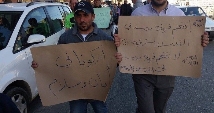 وندد المعتصمون باقتحام قوات الاحتلال للمدارس واعتقال طلبتها؛ ورددوا شعارات منها: 'اقتحم فهذه مدرسة في القدس الشرقية وليس في القدس الغربية'، و'لا للعنف وإرهاب الشرطة الإسرائيلية'، و'اتركونا في أمان وسلام'.