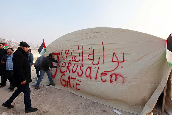 زمن برس، فلسطين: اقتحمت قوات الاحتلال قربة بوابة القدس وأطلقت قنابل الغاز والصوت صوب المتواجدين، حيث أصيب العشرات من المتواجدين فيها، وعرف منهم أعضاء اللجنة المركزية لحركة فتح محمود العالول وسلطان أبو العينين والمتحدث باسم حركة فتح أحمد عساف.