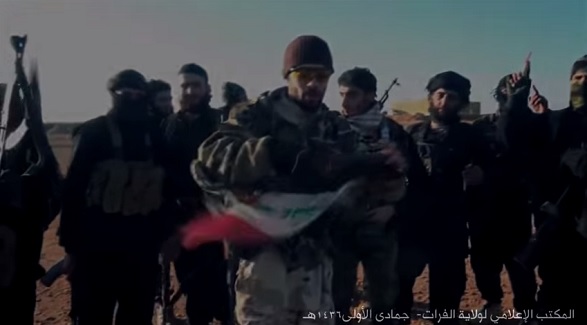 ويبدو عناصر التنظيم وهم يسيطرون على معبر الوليد الحدودي، ويقتلون عدداً من حرس الحدود العراقيين بالقرب من الحدود مع سوريا، كما نقل موقع "24" الإماراتي.