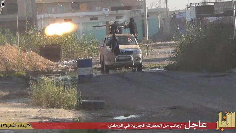 زمن برس، فلسطين: نشر تنظيم الدولة الإسلامية في العراق والشام أو ما يُعرف بـ"داعش،" صورا للهجوم الذي شنه على مدينة الرمادي في محافظة الأنبار، الأربعاء.