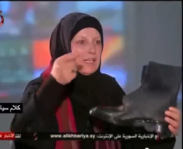 وتابعت البشراوي أثناء تقبيلها واحتضانها “البسطار”: “هذا ما اشتهيته من سوريا، هذا البوط العسكري هو من سيفرض السلام، هؤلاء الجنود الأبطال ضحوا بدمائهم من أجل السلام، وكرمال أمة بأكملها”.
