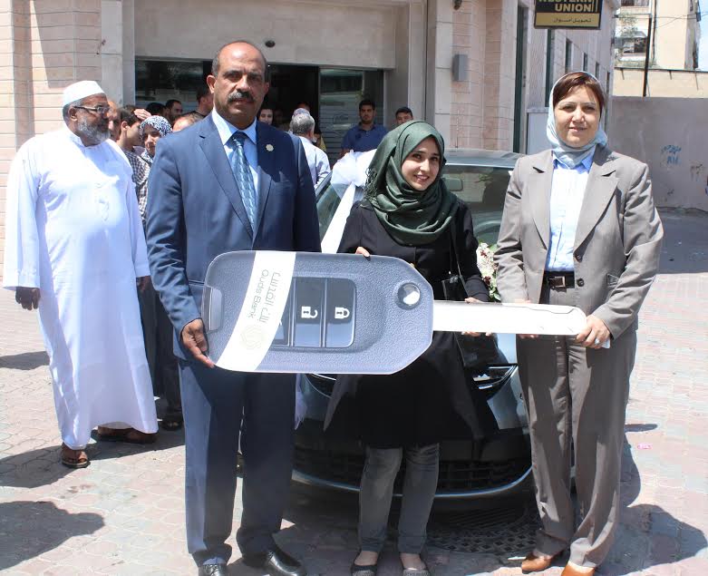 زمن برس، فلسطين: سلم بنك القدس أمس الإثنين ضمن حملة جوائز حسابات التوفير للعام الحالي #فرحة_التوفير .. كل يومين سيارة أوبل كورسا 2015 مدفوعة الجمارك للفائزة مها غسان سليم غزال والمدخرة لدى فرع غزة والجائزة الثانية راتب بقيمة 500$ يدفع لمرة واحدة وكانت من نصيب كروان يوسف عودة نصار والمدخر لدى فرع بيت جالا.