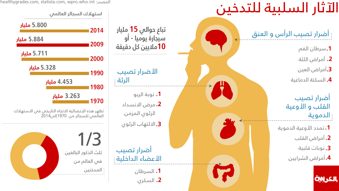 هذا ما يفعله التدخين بالجسم من الرأس حتى أخمص القدمين