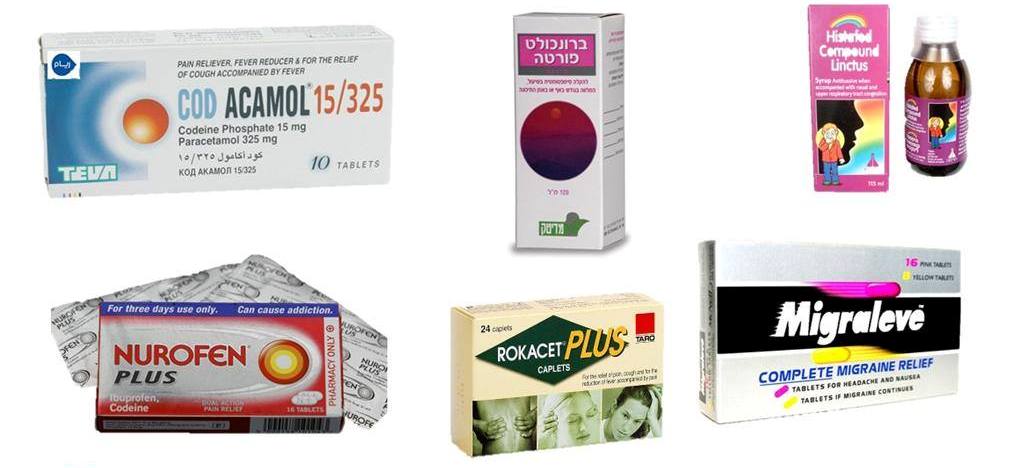 ويتم تسويق مادة كوداين في اسرائيل ضمن العديد من الأدوية مثل ركود وسيروب وكودابرو وكود أكامول وكويكل وغيرها.