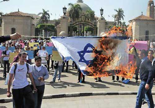 مصريون يحرقون علم إسرائيل ويطالبون بطرد السفير