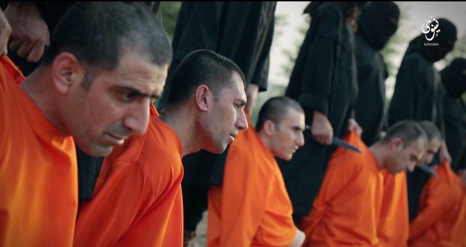 زمن برس، فلسطين: نشر تنظيم "داعش" فيديو مروع جديد يظهر قيام عناصره بنحر 7 من عاصر البشمركة الكردية، الذين أسرهم التنظيم خلال المعارك الضارية بين عناصره والقوات الكردية في محيط مدينة كركوك.