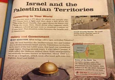 واعتبر الناشطون أن هذا “تزييفا للتاريخ” يتعلق بالقضية الفلسطينية والصراع العربي الإسرائيلي، كما تبين الصورة سؤالاً موجهاً للطلبة عن مدى السعادة التي سيضمنها هذا الحل، بإقامة دولة ذات ثقافتين مختلفتين فوق أرض واحدة.