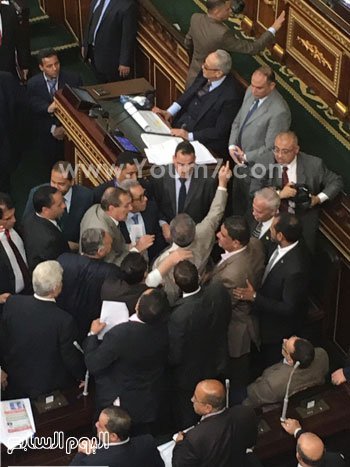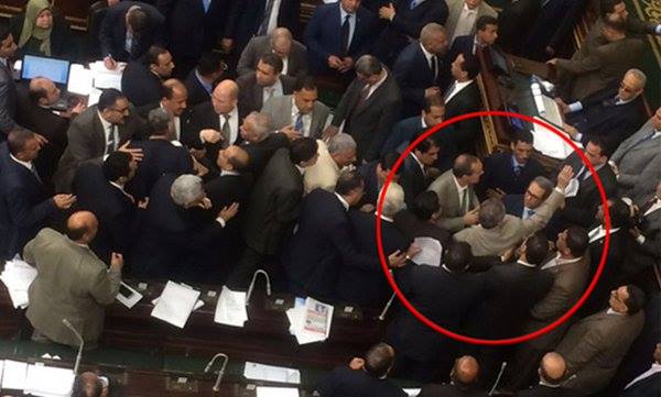 وعلى خلفية ما حدث من مشادات عقب ضرب عكاشة "بالجزمة" قرر رئيس المجلس علي عبد العال طرد النائبين من قاعة المجلس.