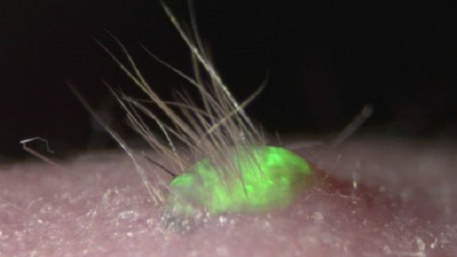 وعندما تم زرعه في "فأر نزع جلده" وجهاز مناعته لا يعمل، أخذ الجلد في التكامل بشكل جيد، وظهر الشعر.