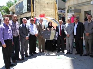 بنك القدس يسلم الفائزه من الخليل سيارة هيونداي اكس